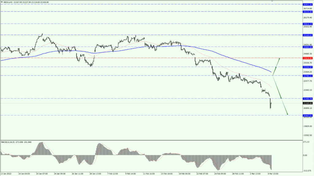• 如果 HK50 能够稳定运行于 22785 一线下方,届时关注 20467 一线的支撑力度;