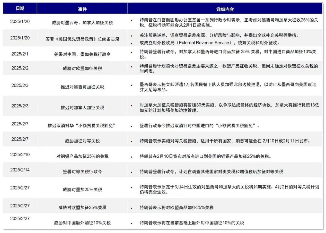 因此,近期我们看到的数据走弱都是去年 9 月以来利率不断走高的结果,而 1 月以来美债利率再度下行,对经济的提振效果将大概率也会在未来一段时间得到体现,未来最大的变数在于特朗普的关税风险,即外部风险对内部市场的冲击影响几何?这也是上周鲍威尔讲话时传递的背后根本逻辑原因。
