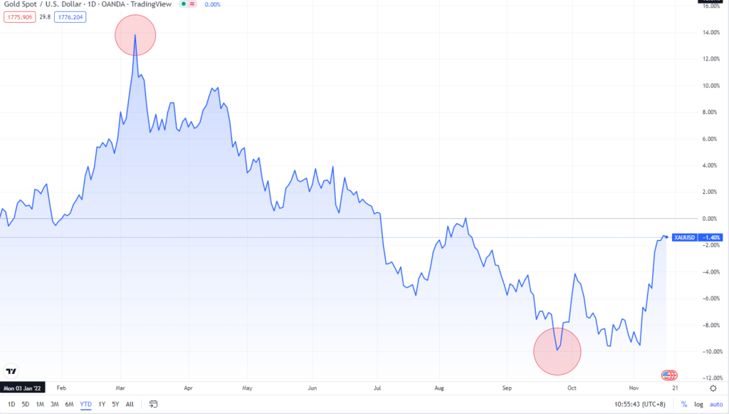 每逢全球市场热点事件,黄金价格往往会随之出现剧烈波动,今年亦不例外。与年初相比,今年金价曾在 3 月份出现了大涨逾 13% 的行情,亦有下跌近 10% 的低迷表现。在今年剧烈波动的行情中,投资者可以获取到哪些有价值的信息,从而为明年的投资筹谋布局?本文就将带你一探究竟。