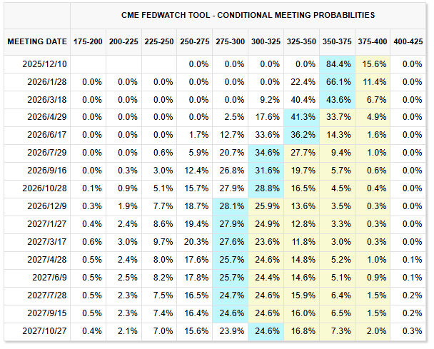11 月 25 日至 26 日,市场情绪迅速转鸽,投资人正大举押注美联储(Fed)将在 12 月会议上再度降息 25 个基点。根据交易数据,降息概率一周内从 30% 飙升至 80%,联邦基金期货与 SOFR 期权交易量连续刷新纪录,显示投资者积极布局“黑天鹅式”降息行情。