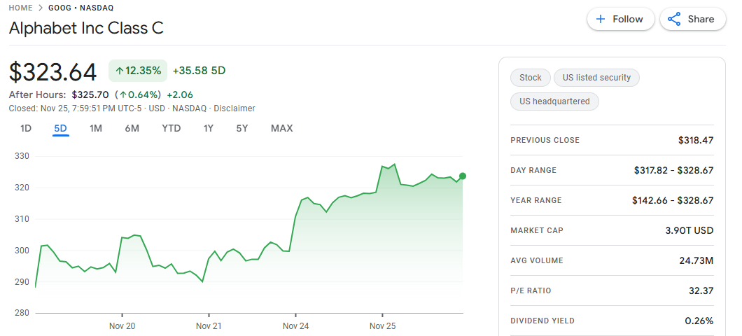 行业动态 | Google 借 Gemini 3 强势逆袭 AI 竞赛,市值逼近 4 万亿美元