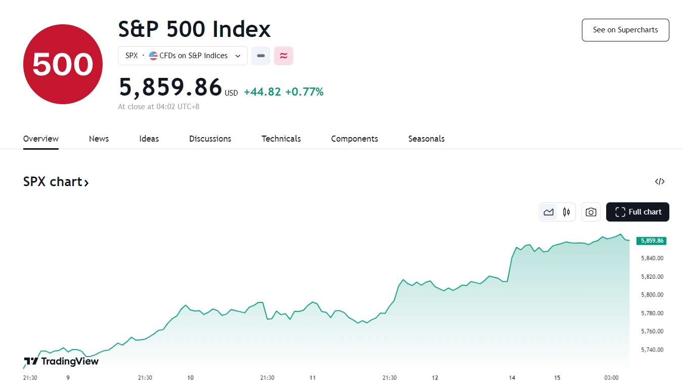 具体来看,标普 500 指数收涨 44.82 点,涨幅 0.77%,报 5859.85 点。与经济周期密切相关的道指收涨 201.36 点,涨幅 0.47%,报 43065.22 点。科技股居多的纳指收涨 159.75 点,涨幅 0.87%,报 18502.69 点。纳指 100 收涨 0.82%。