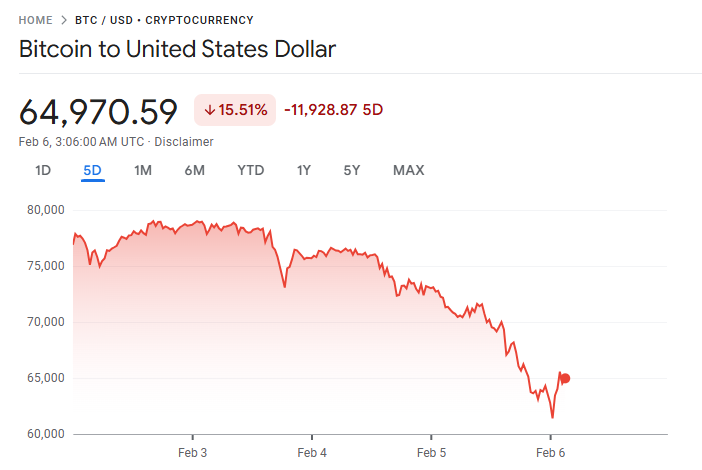 周四晚间,比特币价格一度跌破 6.1 万美元关口,跌幅一度扩大至 15%。