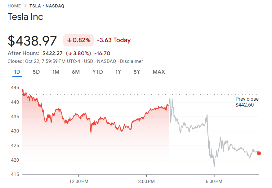 行业动态 | 特斯拉第三季度获利不及预期,盘后股价下跌逾 3%