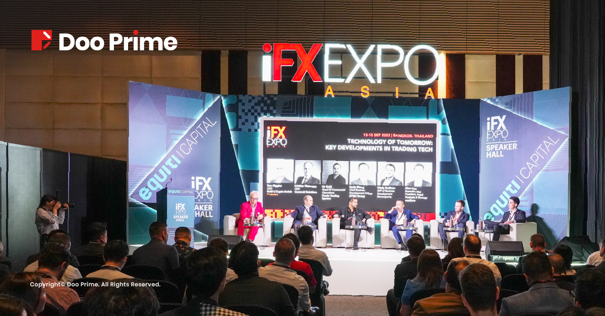 Nhà môi giới công nghệ tài chính (fintech) hàng đầu thế giới – Doo Prime đã góp mặt trong hội nghị B2B với quy mô “khủng” – iFX Expo Asia 2022, được tổ chức ở Trung tâm Hội nghị Centera Grand & Bangkok, Central World tại Băng Cốc, Thái Lan từ ngày 14 tháng 9 đến ngày 15 tháng 9 năm 2022.