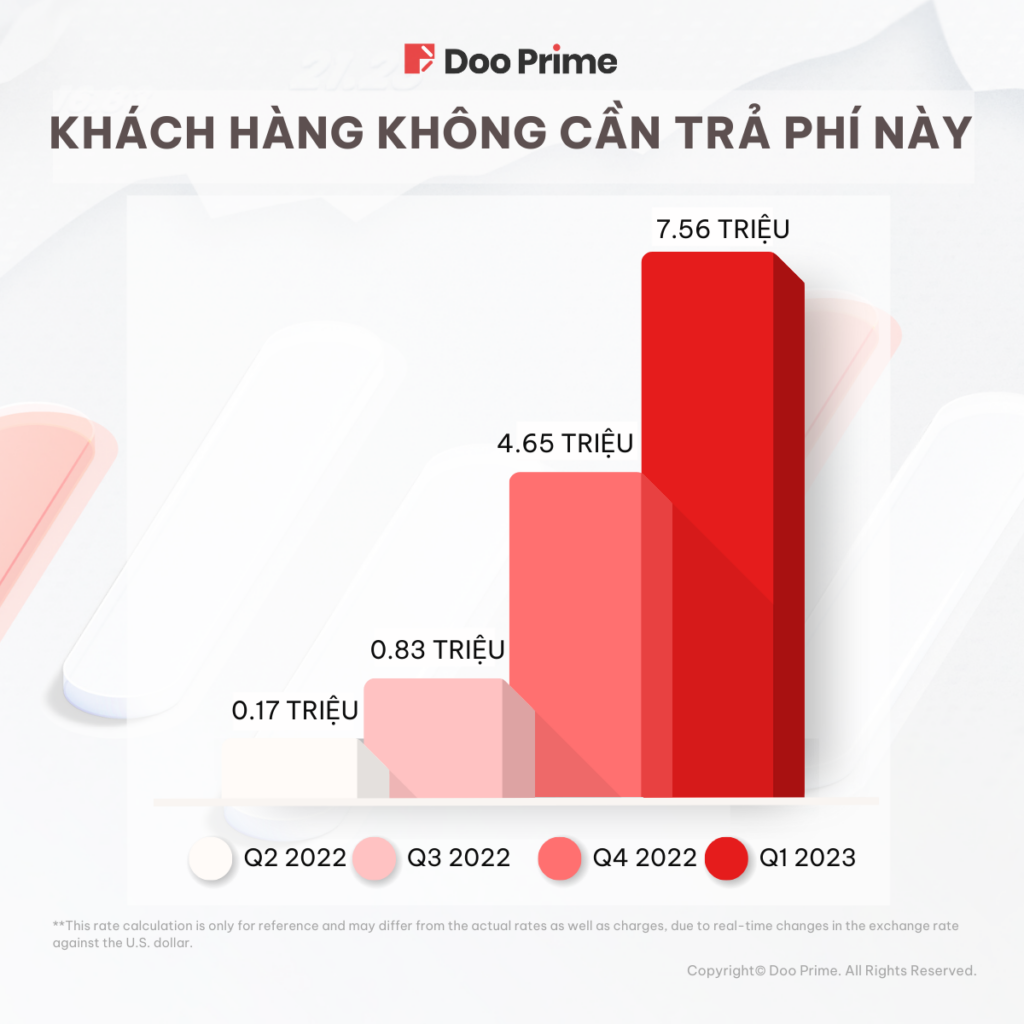 Theo ghi nhận từ Doo Prime, từ quý 3 cho đến quý 4 năm 2022, chi phí hoán đổi được miễn đã tăng đến mức đột biến là 560%, theo sau đó là mức tăng trưởng 162% vào quý 1 năm 2023. Có thể nói, đây là kết quả minh chứng cho sự lan toả của chiến dịch đối với cộng đồng đầu tư tại Doo Prime. Đồng thời, những con số “biết nói” trên đã gián tiếp cho thấy sự phổ biến ngày càng rộng rãi của giao dịch Miễn Phí Swap, cũng như tác động của chiến dịch đối với quý khách hàng. Từ đây, có thể đánh giá rằng, chiến dịch Miễn Giảm Phí Swap của Doo Prime đã ghi nhận được những thành tích vô cùng ấn tượng trong suốt thời gian vừa qua.