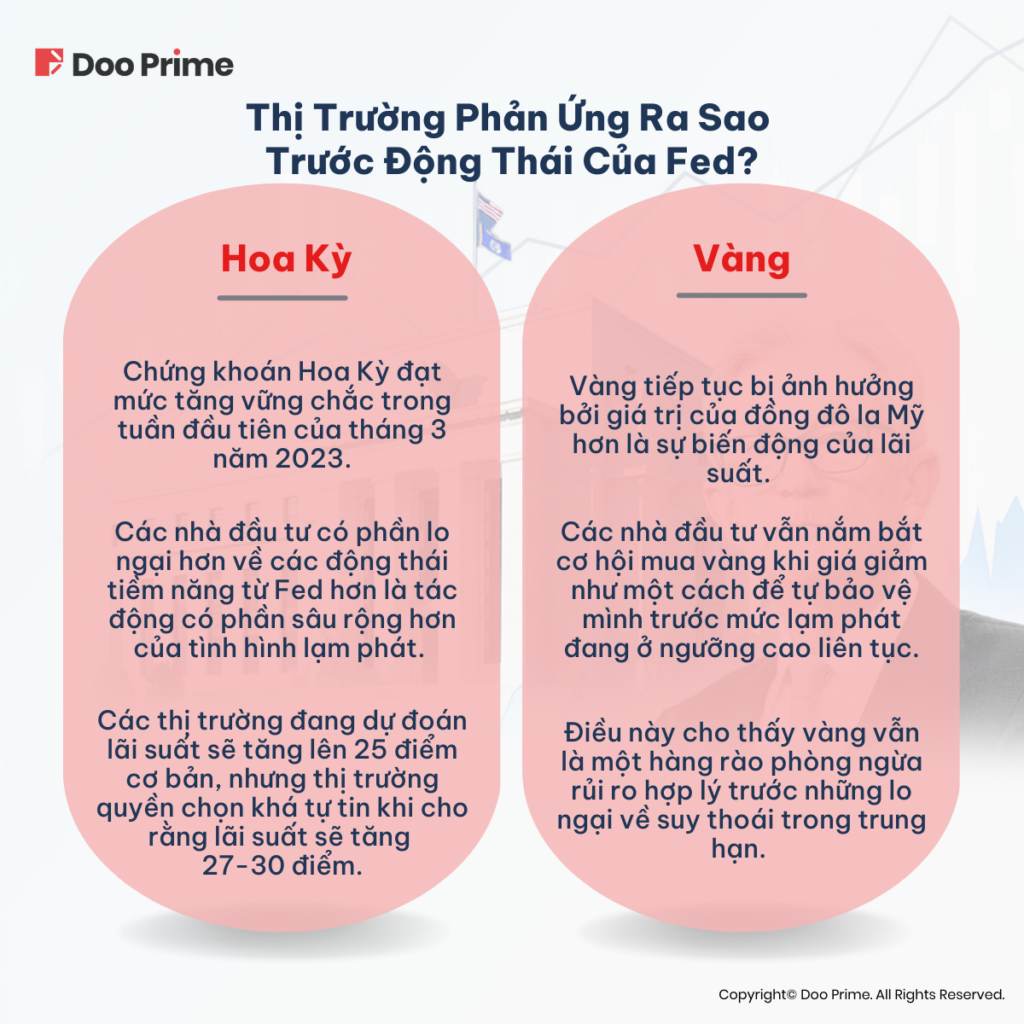 Bất chấp mọi nghi ngại liên quan đến khả năng giảm giá, chứng khoán Hoa Kỳ vẫn đạt mức tăng vững chắc trong tuần đầu tiên của tháng 3 năm 2023. Điều này được cho là bởi những nguồn tin tích cực về tâm lý kinh doanh, hoạt động tiêu dùng trái chiều và sự tăng trưởng về lợi suất trái phiếu kho bạc 10 năm của Hoa Kỳ – vốn tác động có phần hạn chế hơn đối với chứng khoán vào trước đây.