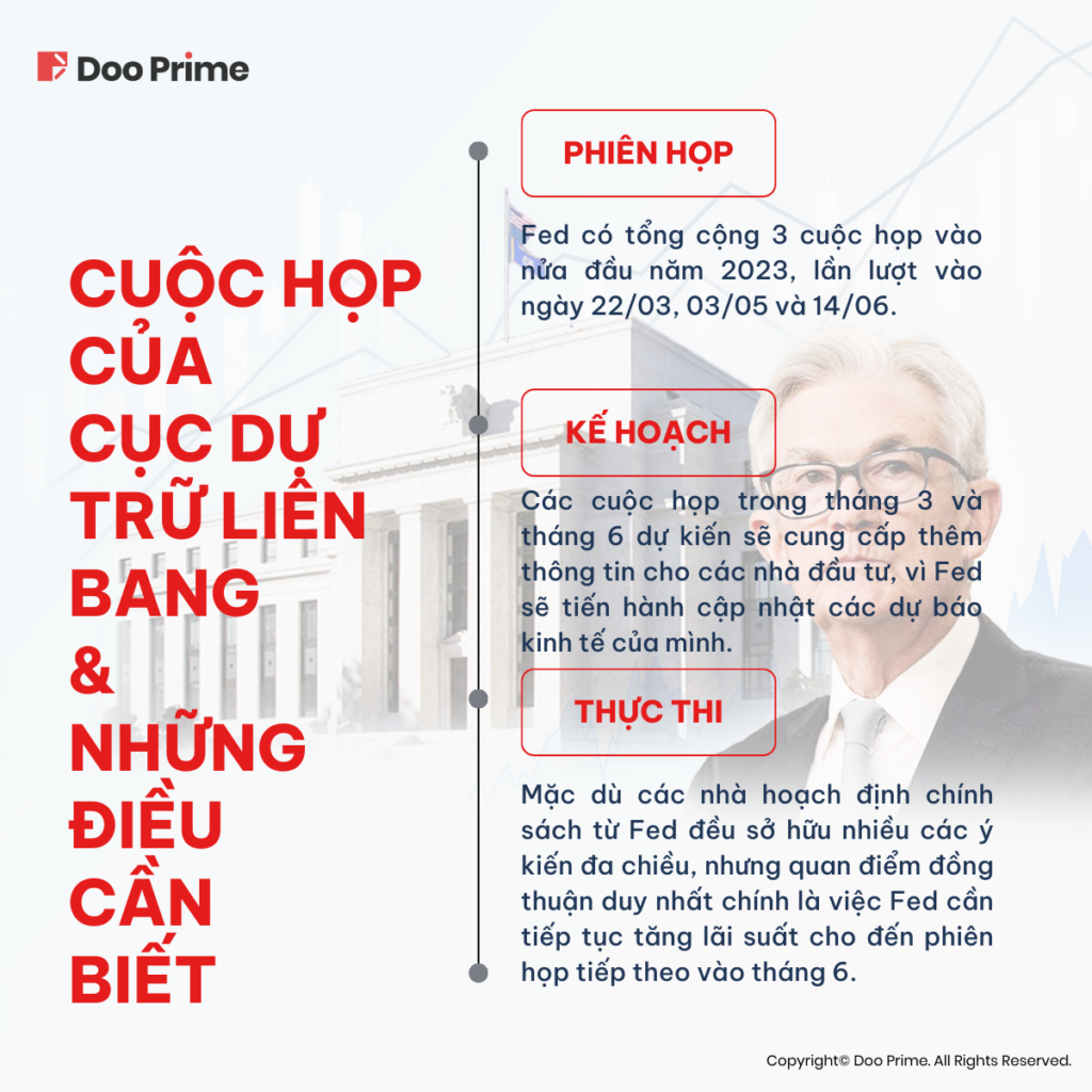 Cuộc họp sắp tới của Fed vào ngày 22 tháng 3 năm 2023 sẽ thông tin kịp thời cho các nhà đầu tư, khi Bản Tóm Tắt Về Dự Đoán Kinh Tế sẽ góp phần tạo điều kiện cho cộng đồng giao dịch điều chỉnh kỳ vọng về mức tăng lãi suất trong khuôn khổ 2023.